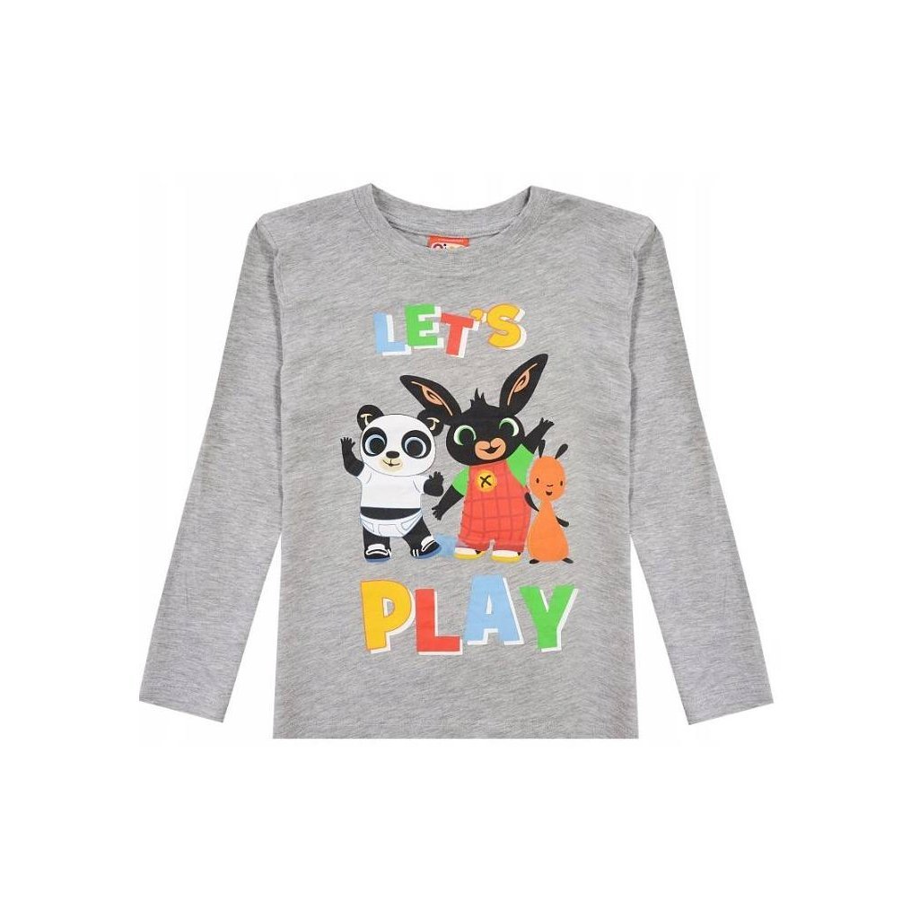 Chlapecké tričko s dlouhým rukávem, motivem Králíčka Binga je ideální volbou pro malé fanoušky tohoto oblíbeného animovaného seriálu. Tričko je vhodné pro každodenní nošení, do školky, školy, volnočasové aktivity. Tričko má na přední straně nažehlený obrázek Binga a jeho kamarádu + nápis Leťs Play.