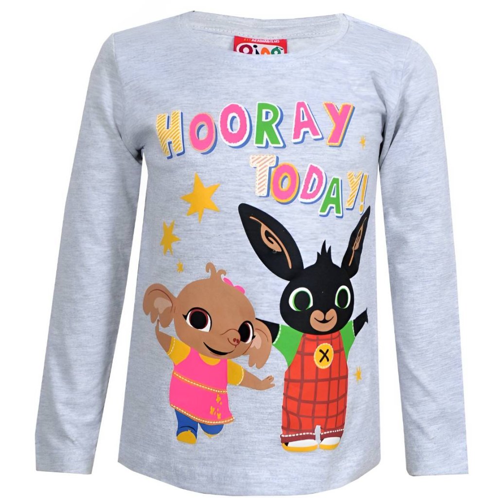 Dívčí tričko s dlouhým rukávem s potiskem oblíbených pohádkových postaviček králíčka Binga a jeho nejlepší kamarádky Suly. Kromě obrázku, zdobí přední stranu i nápis HOORAY TODAY!
