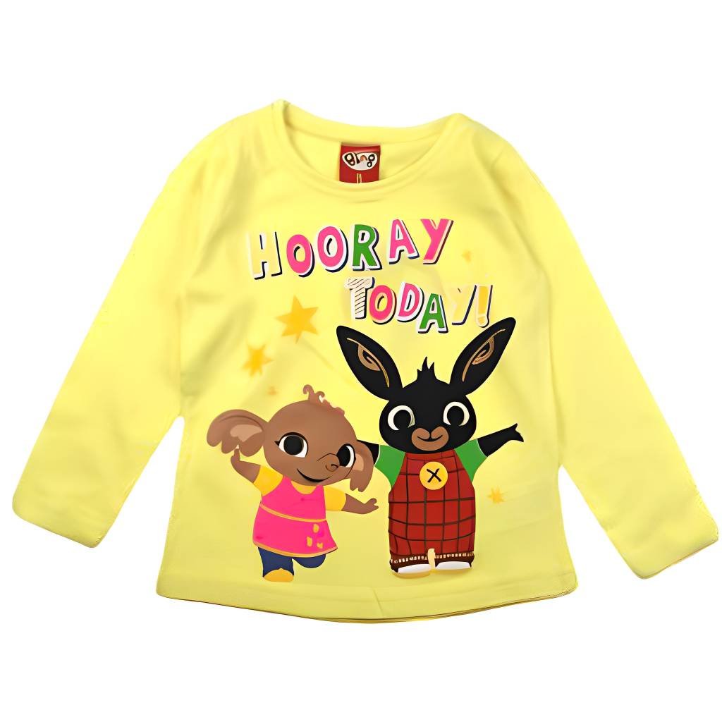 Dívčí tričko s dlouhým rukávem s potiskem oblíbených pohádkových postaviček králíčka Binga a jeho nejlepší kamarádky Suly. Kromě obrázku, zdobí přední stranu i nápis HOORAY TODAY!
