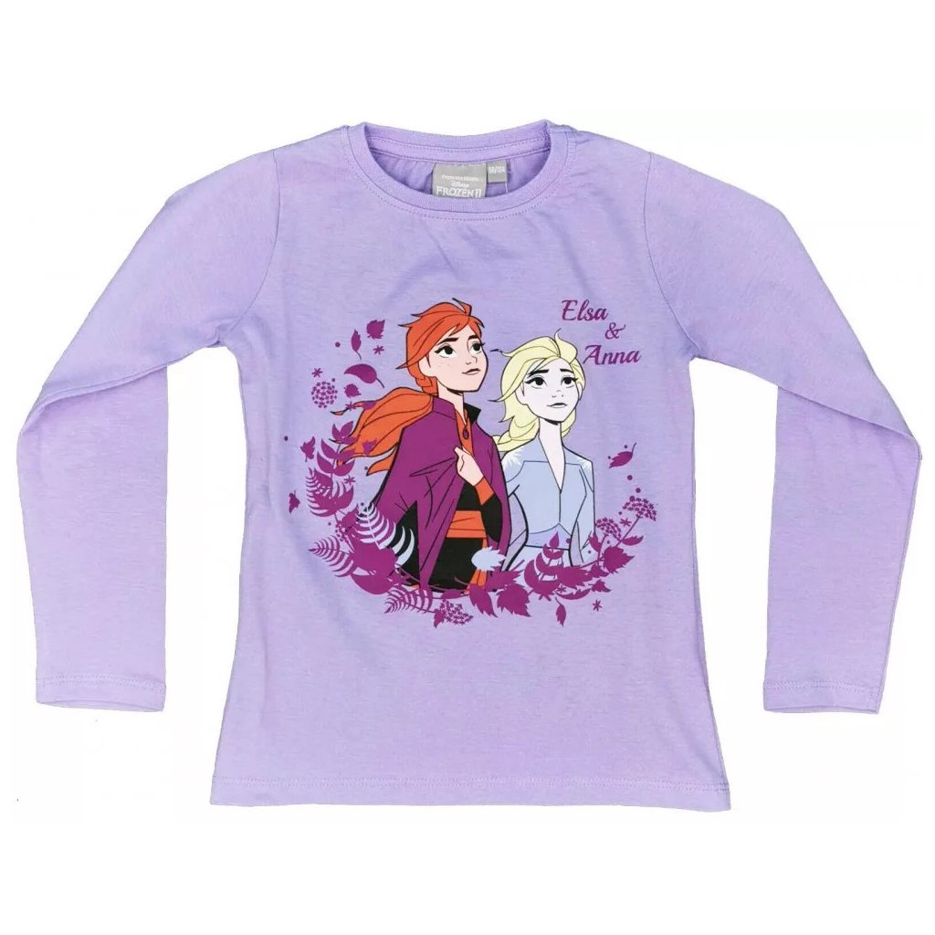 Kvalitní dívčí triko s dlouhým rukávem s obrázkem Princezny Elsy a Anny z oblíbené pohádky Ledové království.
