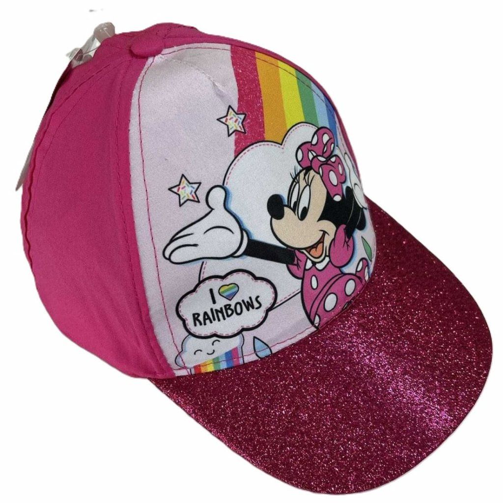 Růžová kšiltovka Minnie Mouse Rainbow s třpytivým kšiltem vyrobená ze 100% bavlny, potisk 100% polyester .Díky UV ochraně 30 chrání před slunečním zářením. Nastavitelný suchý zip vzadu umožňuje pohodlné přizpůsobení velikosti. Perfektní volba pro volný čas, sport i letní dny.